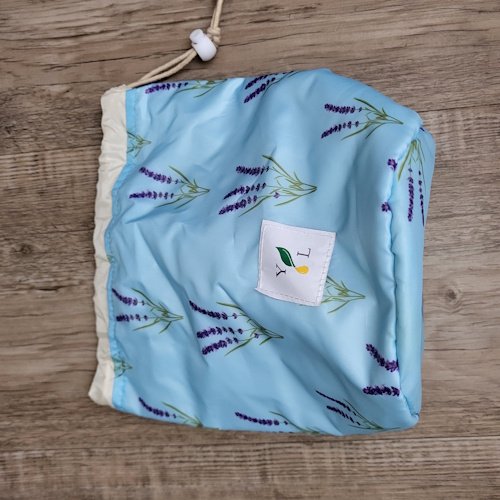 Lichtblauwe diffuser tas met lavendelprint en Young Living logo